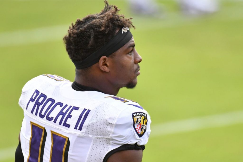 James Proche II plays for the Baltimore Ravens.