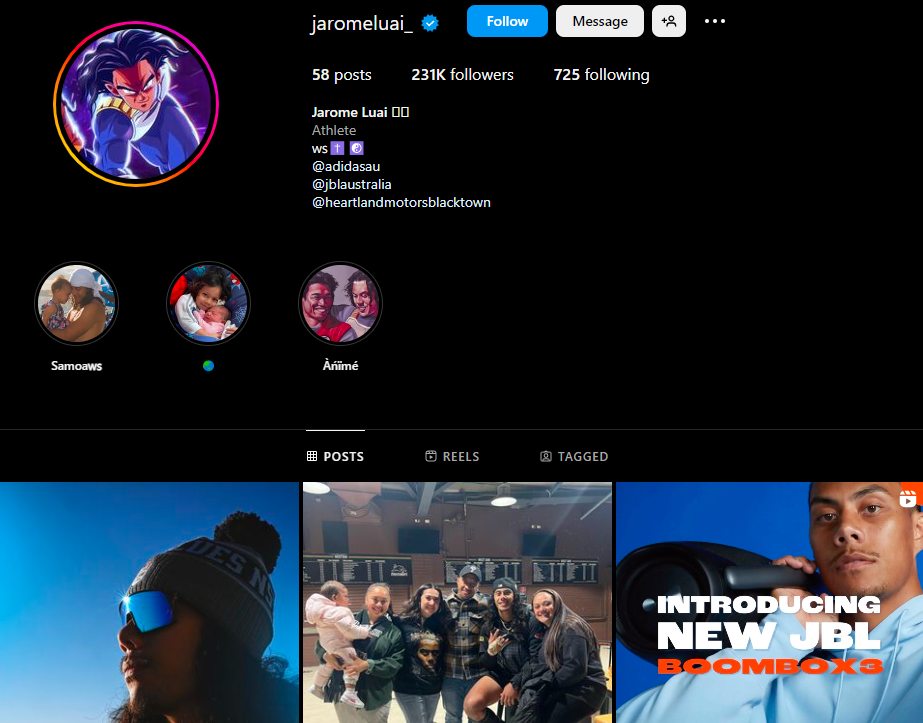 Does Jarome Luai have Instagram? Luai has 231K Instagram followers.
