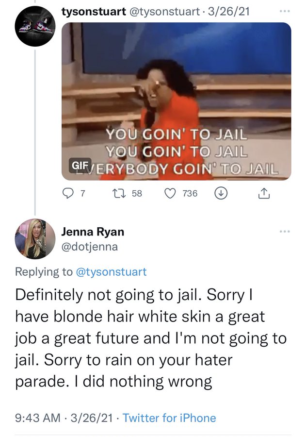 Jenna Ryan Not Going To Jail Tweet