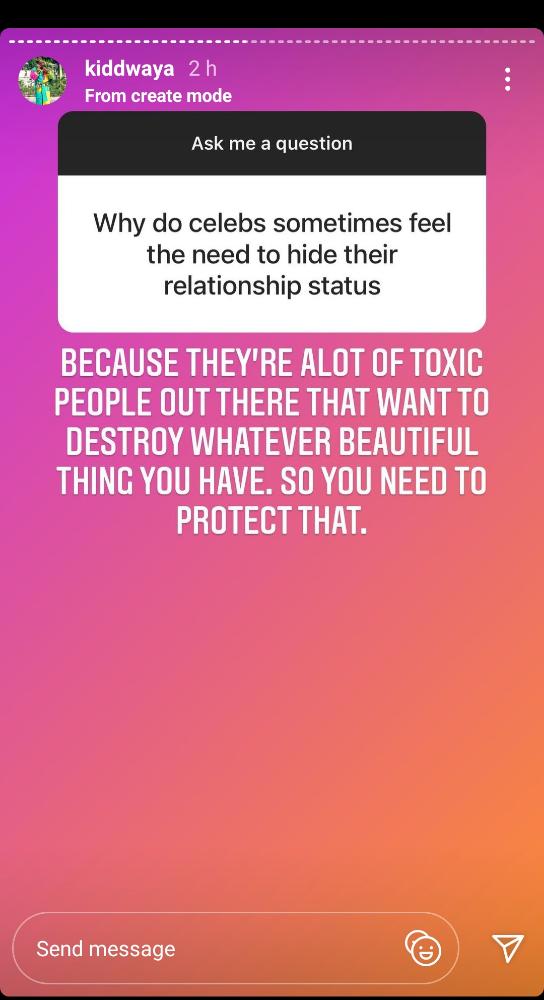 He made this known during a question and answer session with his fans, where a fan asked him why celebrities sometimes feel the need to hide their relationship status.