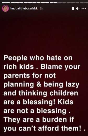 The Big Brother Africa reality show star slammed those who hate on rich kids as she claims it is the parents of poor people who have made a life for them difficult for not planning and being lazy, thinking children are a blessing.