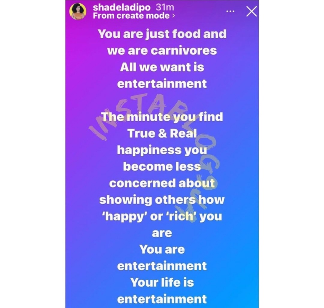 See Shade Ladipo’s post and Tonto’s reaction below.