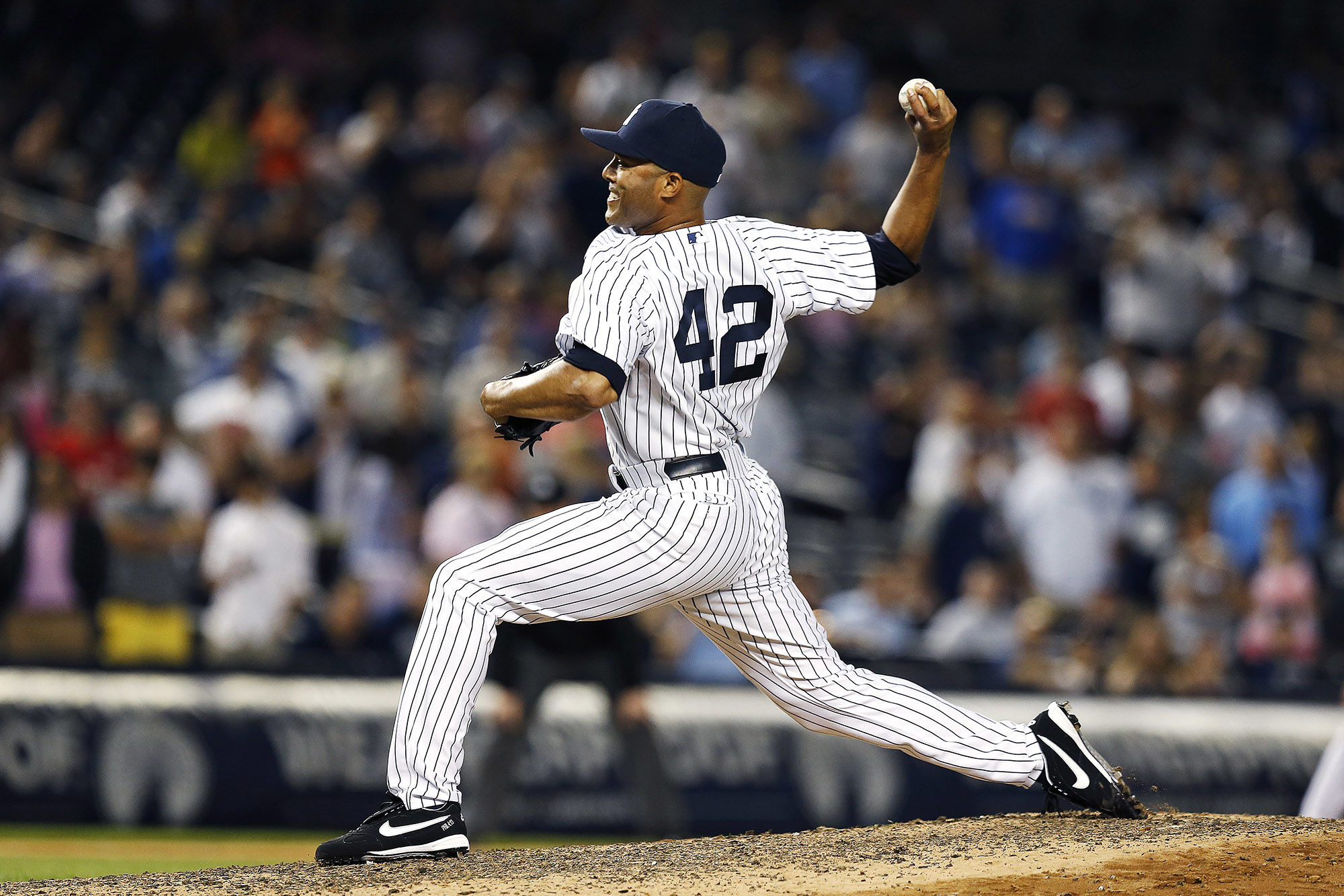 Mariano Rivera played Number 42 for the New York Yankees. He played as a Pitcher/ Relief pitcher.