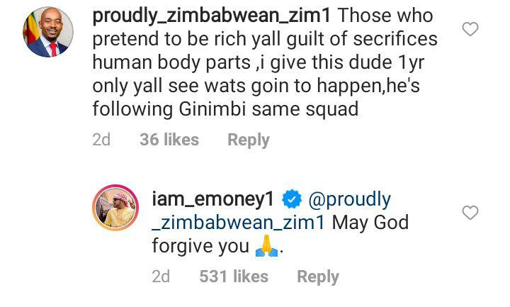 He accused him of following the line of Zimbabwean socialite Ginimbi who died amid an accident with his Rolls Royce Wraith. The man has given him a period of one year to check what would happen with his riches if his wealth is not from occultists acts.