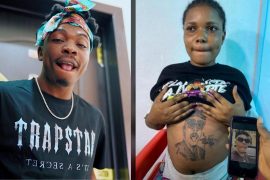 A lady whose identity is unknown has drawn Mayorkun’s face on her baby bump to express how she loves the singer. Meanwhile, the trend of fans tattooing their favourite celebrities faces on their bodies has been highly condemned by some Nigerians.