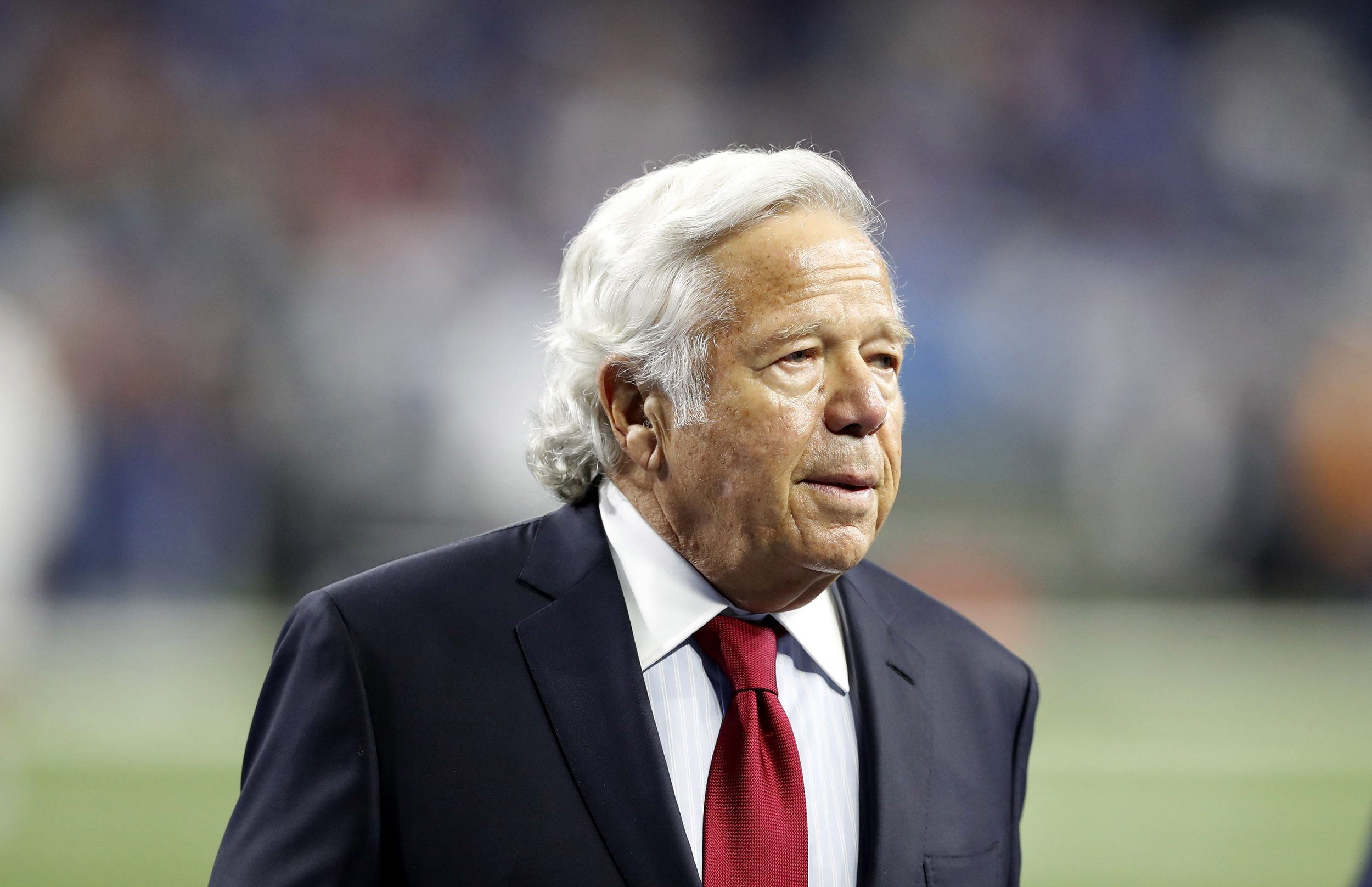 New England Patriots owner Robert Kraft during pregame of an NFL football game against the Detroit Lions on Sept. 23, 2018, in Detroit.