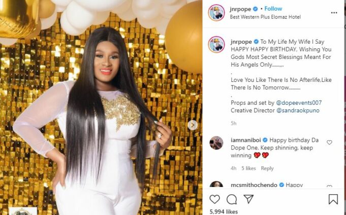 Nollywood Actor, Junior Pope, has caused a stir on social media with the birthday message he sent to his wife, Jennifer Awele, as she celebrated his birthday on the 20the January.