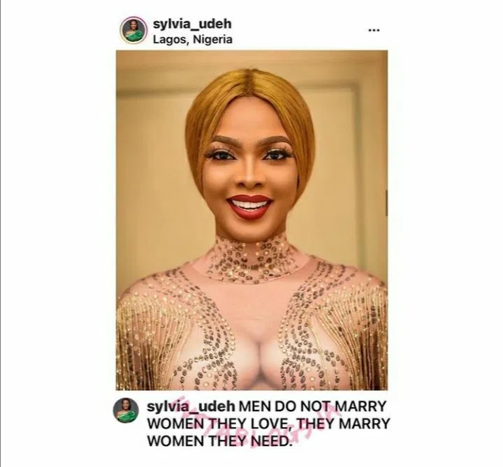 Sylvia Udeh, the Ultimate Love Star, has made a shocking disclosure about men’s decisions in marriage.