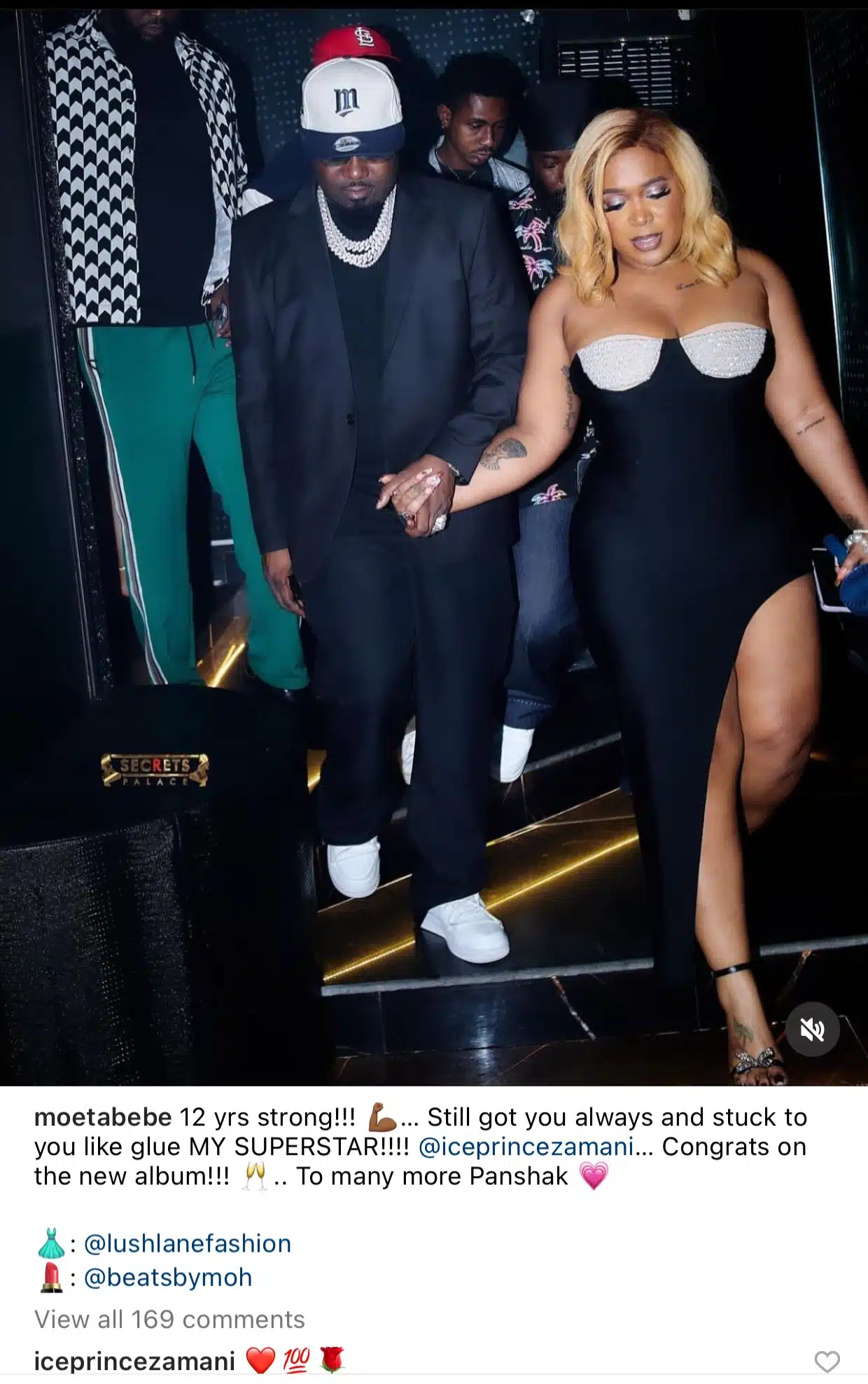 “12 yrs strong!!! 💪… Still got you always and stuck to you like glue MY SUPERSTAR!!!! @iceprincezamani… Congrats on the new album!!! 🥂 To many more Panshak 💗.”