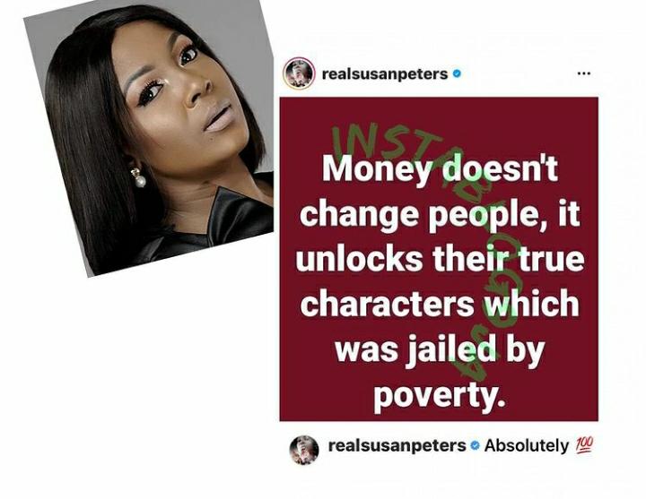Susan Peters has taken to social media and revealed that money doesn’t change people, but poverty is rather responsible for why people act that way.