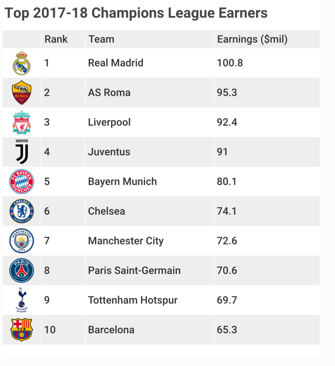 Barcelona was the 2018 La Liga champion and their revenue continues to grow yearly. Barcelona is well-supported around the planet and has 102.7 million likes on Facebook, 63.8 million followers on Instagram, and 29 million followers on Twitter. Barcelona is ranked second with $4 billion