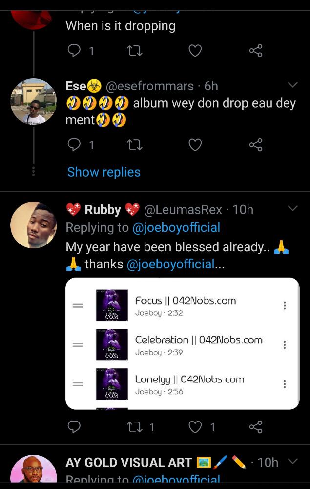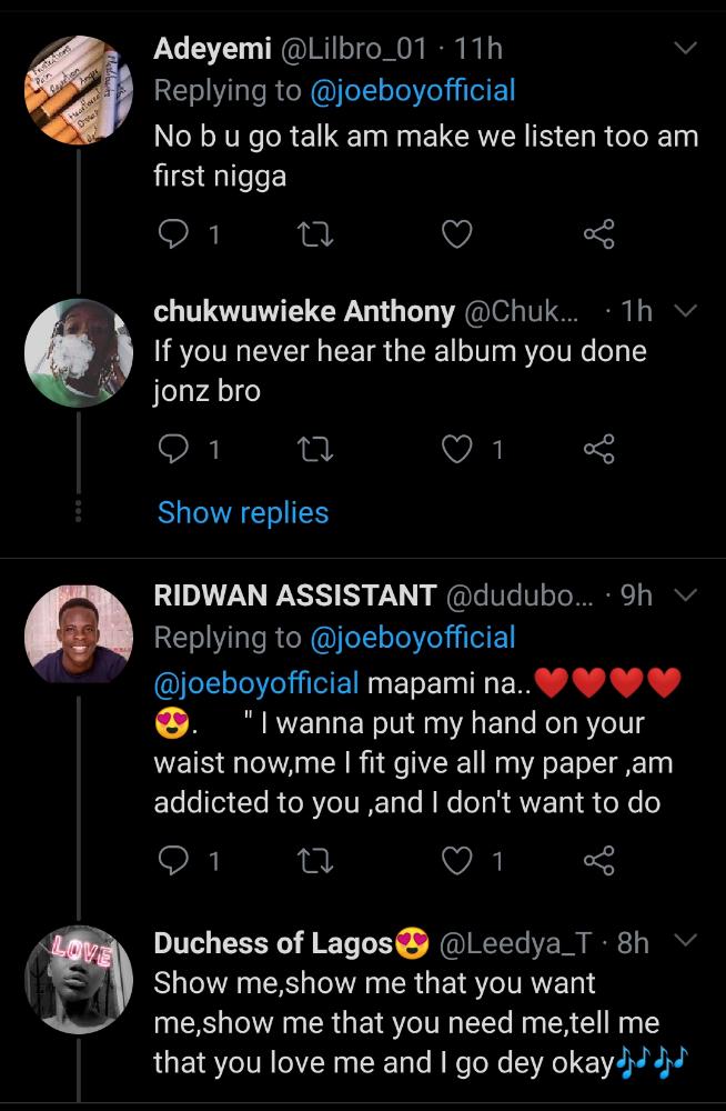 Nigerian musician, Joeboy, has sparked reactions on social media after he made an amazing comment on the album he released a few weeks ago.