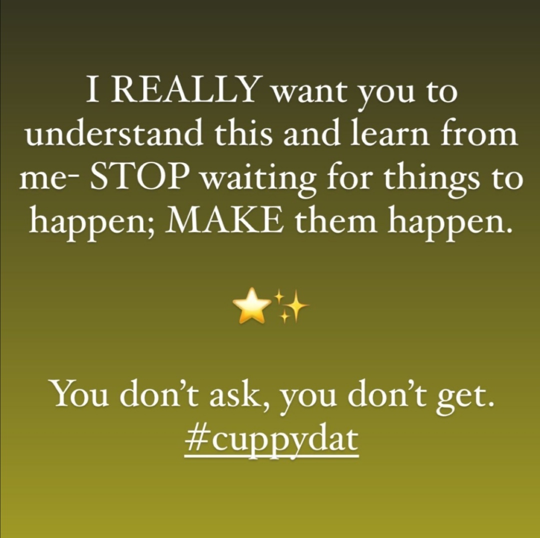“I really want you to understand this and learn from me“, she said. “Stop waiting for things to happen; Make it happen” she added.