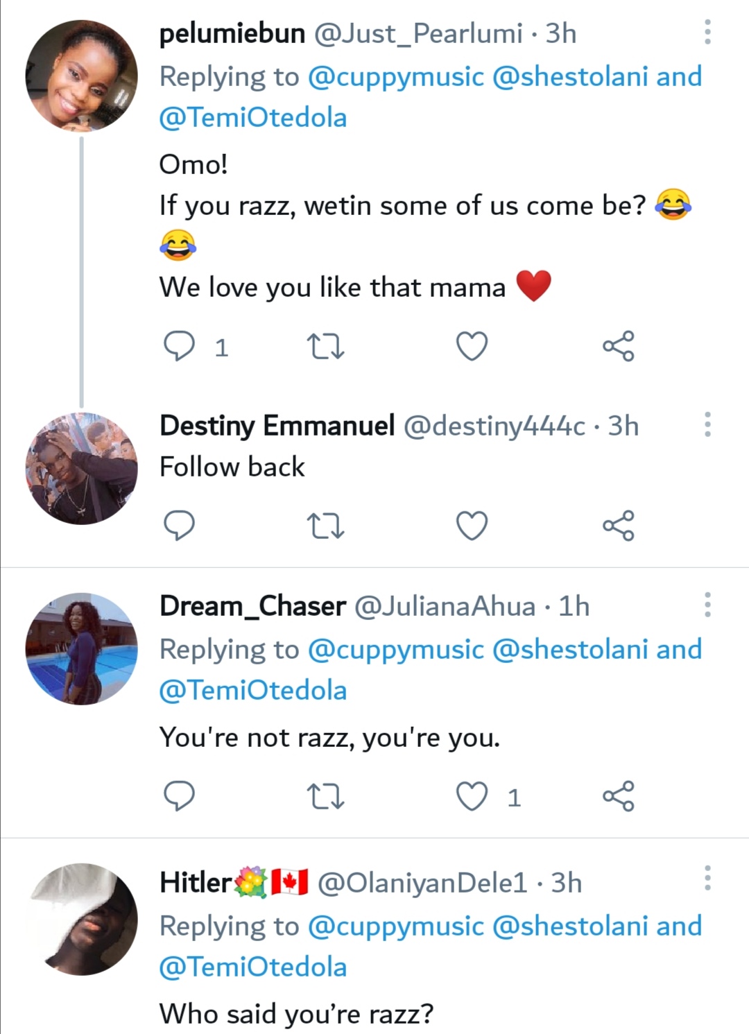 Reacting to Cuppy’s post, many wondered what makes her think she is ‘so razz’ and wondered if she knows exactly what being ‘razz’ means.