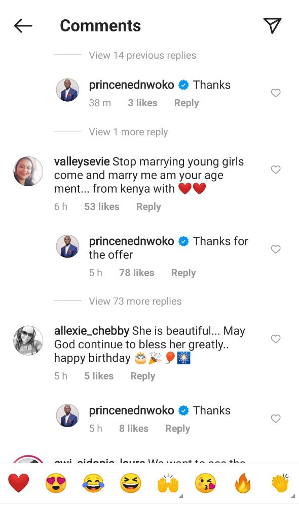 This picture shared by the billionaire sparked a lot of reactions from his fans and social media users. A fan identified as ‘valleysevie’ also commented and said: “Stop marrying young girls and marry me am your age mate…from Kenya with love”.