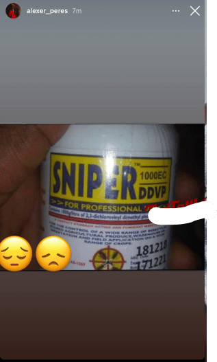 In a recent development, Alexer sparked worry when she shared a photo of an insecticide brand, ‘Sniper,’ on her social media page, accompanied by a sad emoji.