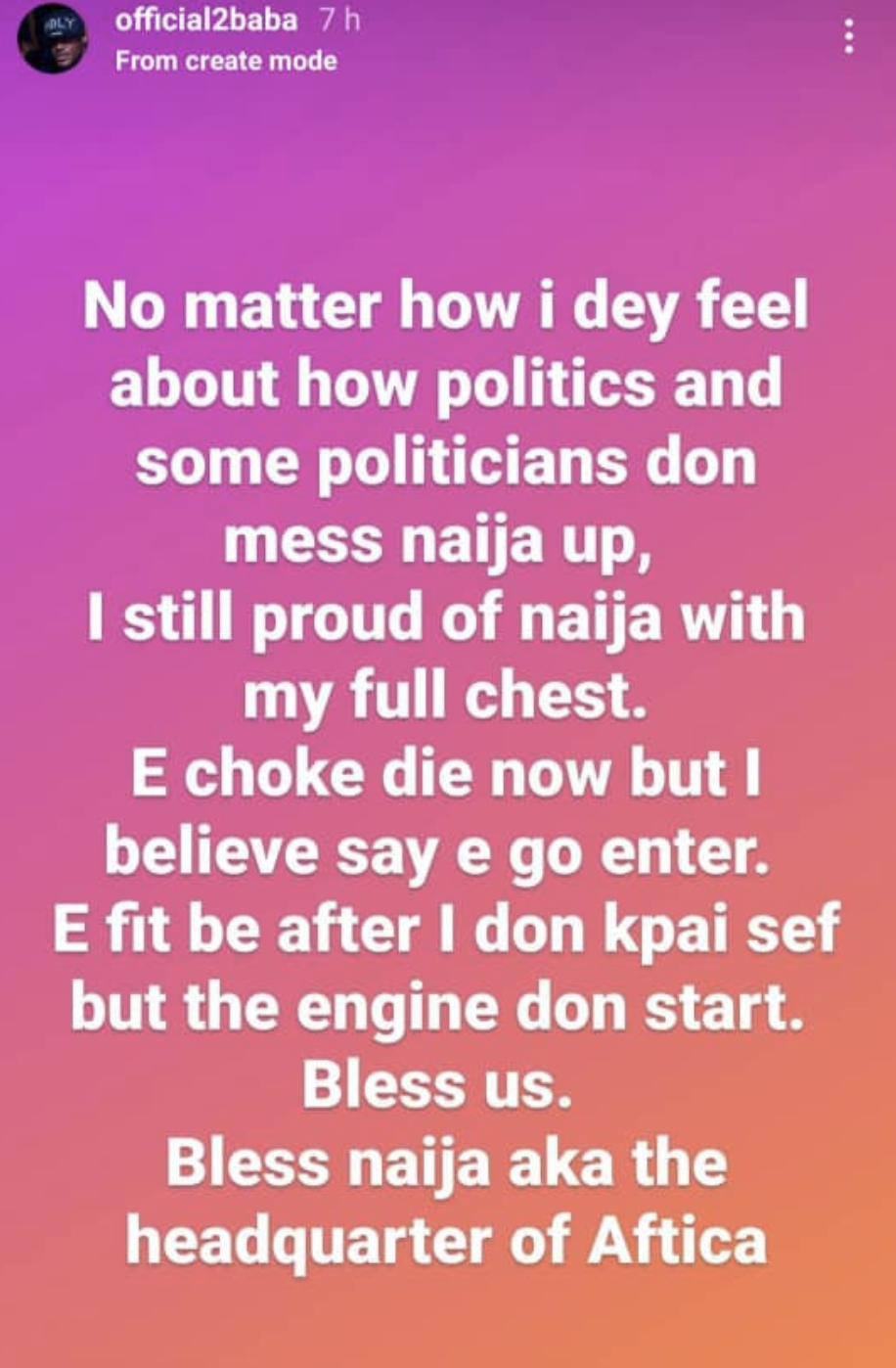 He made this revelation in a post sighted on his Instagram page. According to him despite the corrupt state of politicians in Nigeria, he is always proud to be a Nigerian. Adding to his statement was the fact that, he believes God would make the country better no matter what happens. Hence, he prayed God continues to shower his blessing on the country and its citizens.