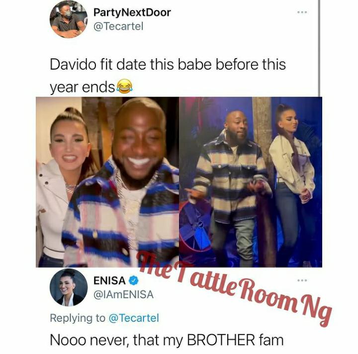 According to Enisa, she cannot date Davido under any circumstance like other ladies are trying to give themselves out to him because Davido is like a family to her.