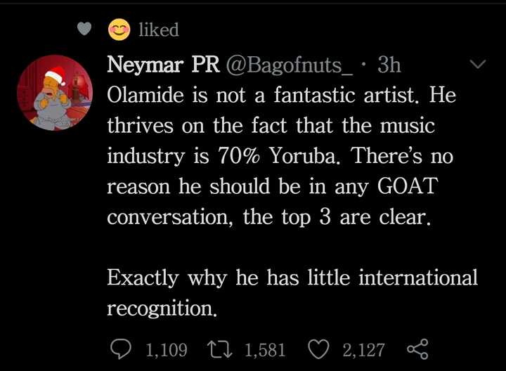 “Olamide is not a fantastic artist. He thrives on the fact that the music industry is 70% Yoruba. There’s no reason he should be in any GOAT conversation, the top 3 are clear.