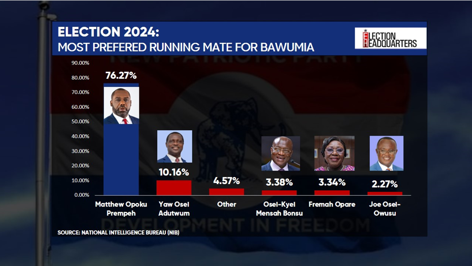 Approximately 84% of respondents believe that Dr. Opoku Prempeh is the ideal running mate for Dr. Bawumia due to his charisma and popularity among party members.