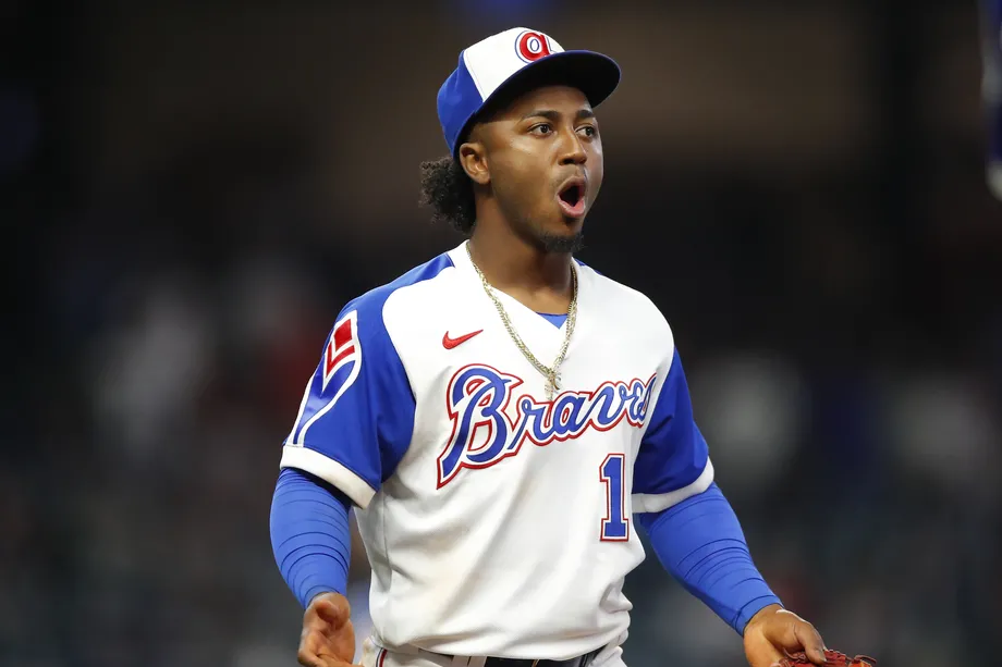 Ozzie Albies wears jersey number 1 for the Atlanta Braves.