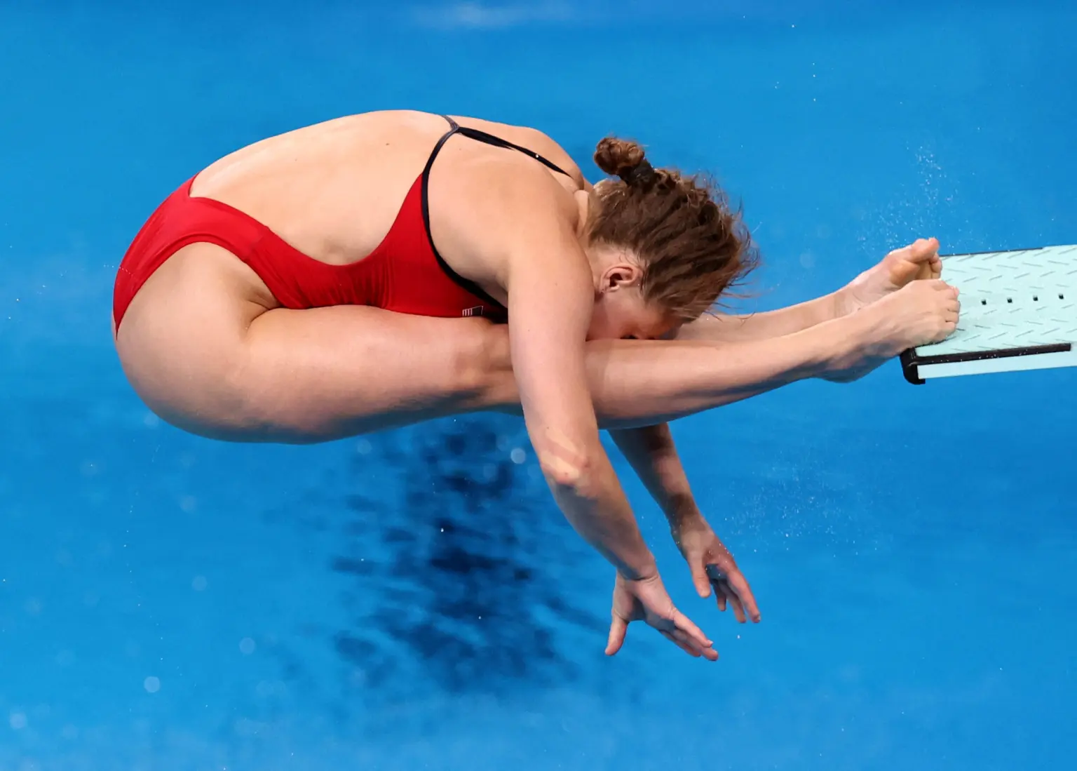 During her first dive, Gibson’s feet struck the board, resulting in a score of 0.0 as the dive was considered a non-dive.