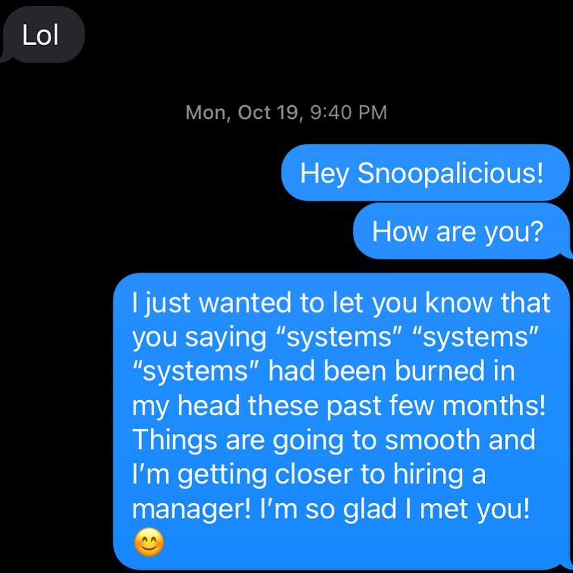 I became more organized and finally am able to step away from the daily kitchen operations.