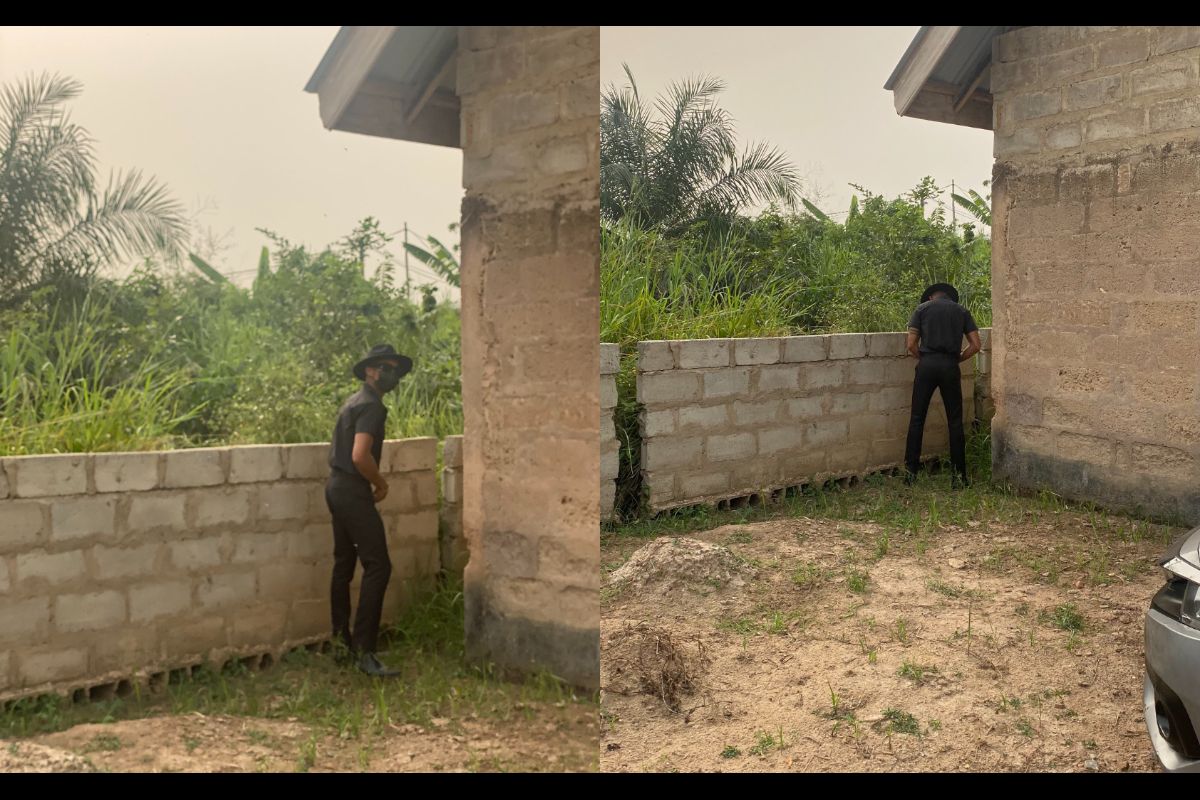 In the photos which have garnered a bunch of reactions on Twitter, KiDi could be seen urinating on the wall of an uncompleted building.