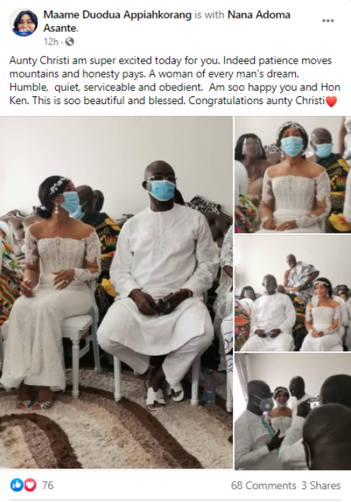 Kennedy Agyapong’s third wife has been identified as Christi and their marriage photos were shared on Facebook by one Maame Duodua Appiahkorang, probably, a member of the NPP Loyal Ladies group.