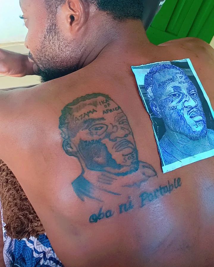 The devoted fan, known as Omo Iya Oyo, proudly displayed the tattoo on his Instagram, declaring Portable as the king.