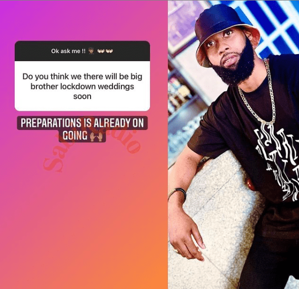 Former BBNaija housemate, Tochi, has revealed that plans are ongoing for a lockdown wedding as some couples in the house are ready to tie the knot.