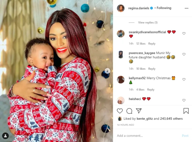 She called Prince Munir, a future husband to her daughter looking at how shinning he is. Regina Daniels has always loved her son and goes the extra mile to express her love for her husband. Recently, she disclosed the reasons why Christmas needs to be celebrated aside from remembering it as the day Christ was born.