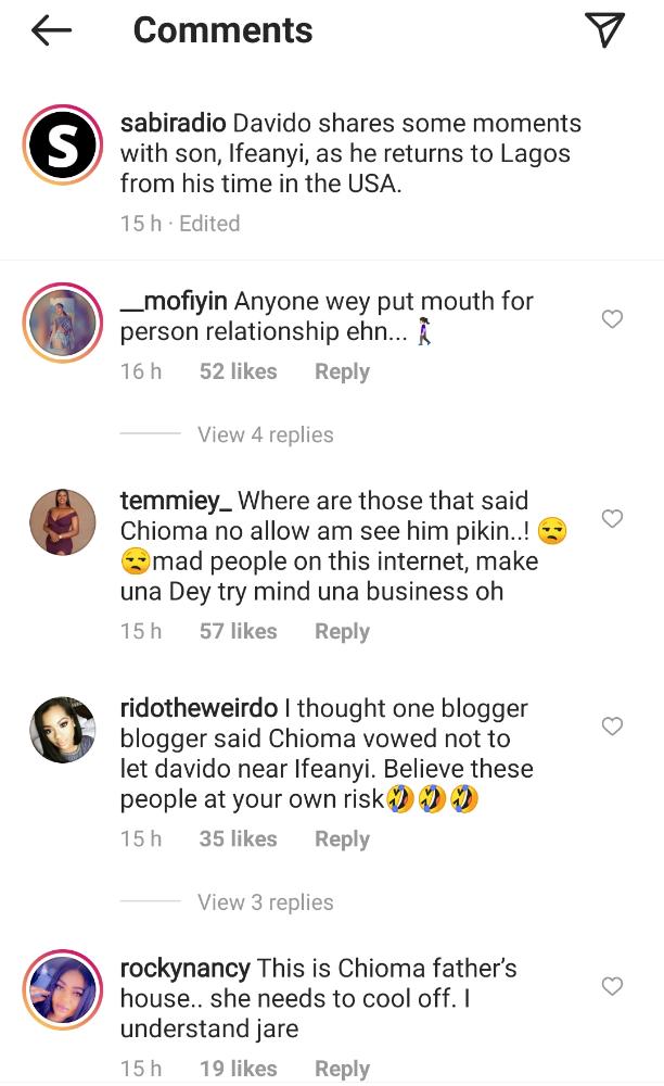 Netizens have finally reacted after Davido shared a video of his visit to his son Ifeanyi after rumours went viral on social media that Chioma has refused to allow him to see his child.