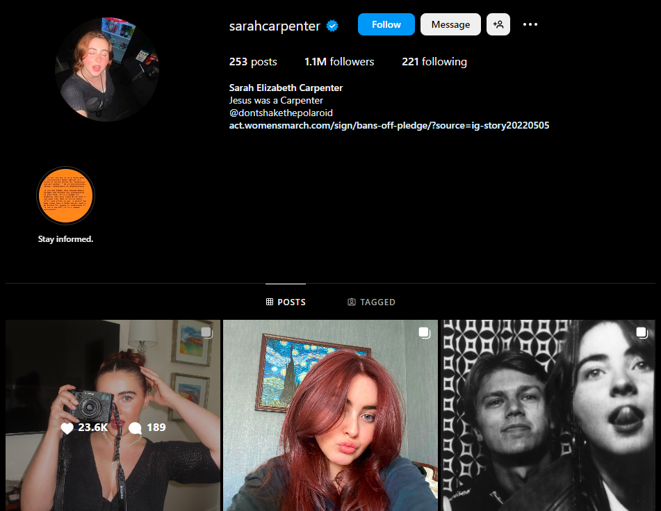 Her Instagram bio reads: