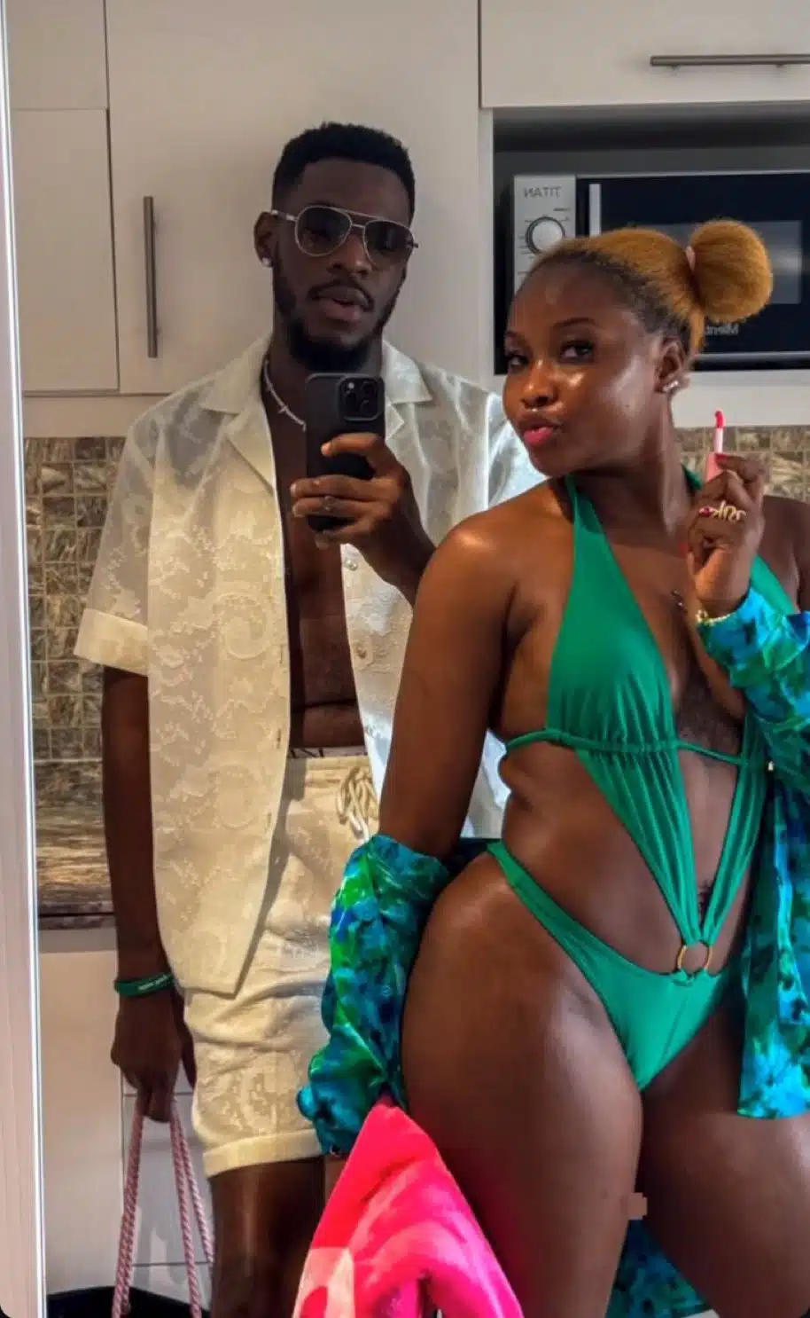 The viral photo on social media shows Soma posing behind Ilebaye, who is wearing a bikini, sparking mixed reactions among fans and followers.