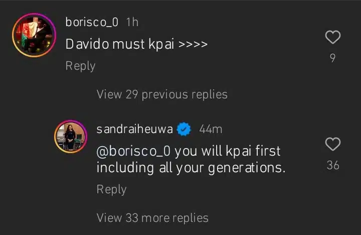 Sandra Iheuwa Responds to Troll Who Wished Death on Davido