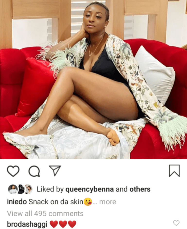 The beautiful actress who is known for her silky brown skin and curved body shape has reminded her fans of how spotless her skin is.