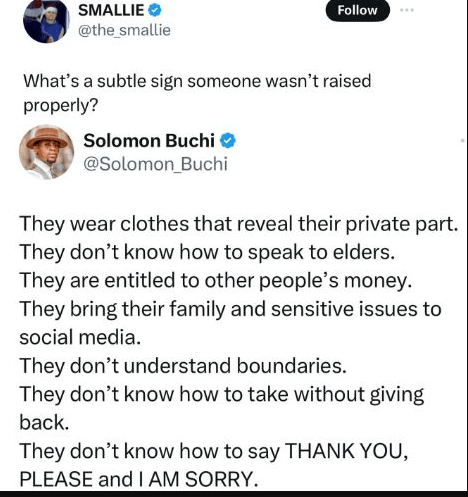 Solomon Buchi, a prominent Nigerian author and public speaker, recently discussed indicators of a troubled upbringing.