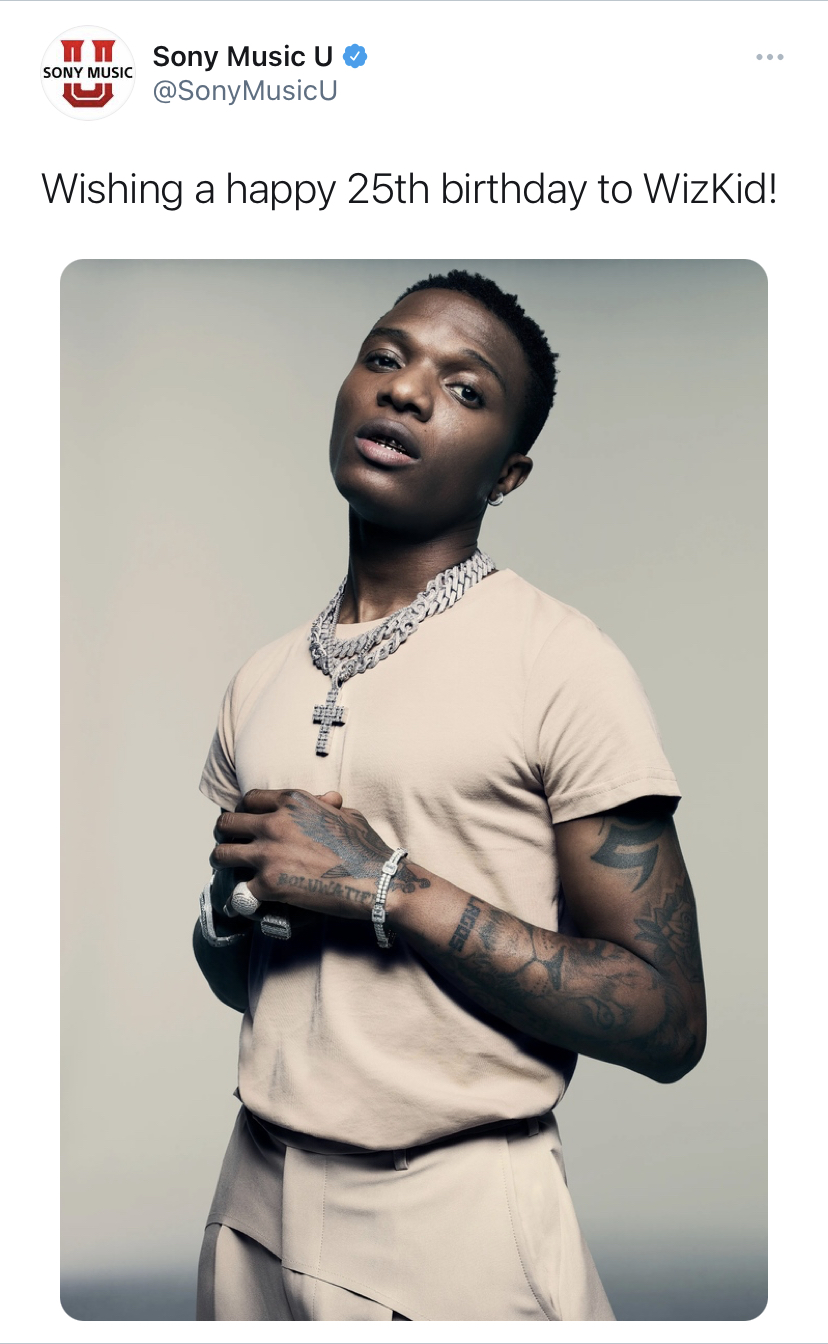 Renowned global music company, Sony Music, has wished Nigerian Grammy award-winner a happy birthday as he turns”25 years” old. Even though he looks very young and ‘smallish,’ he is way older than the age assumed by the organization. So many music lovers and fans of Wizkid took to social media today to celebrate the ‘Made In Lagos’ hitmaker as he turns thirty-one (31) years old.