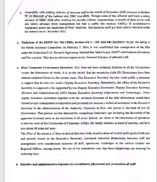 In a petition dated July 1, the division cited unanimous support from nearly all NIA staff members in their decision to seek Prof. Attafuah’s removal.