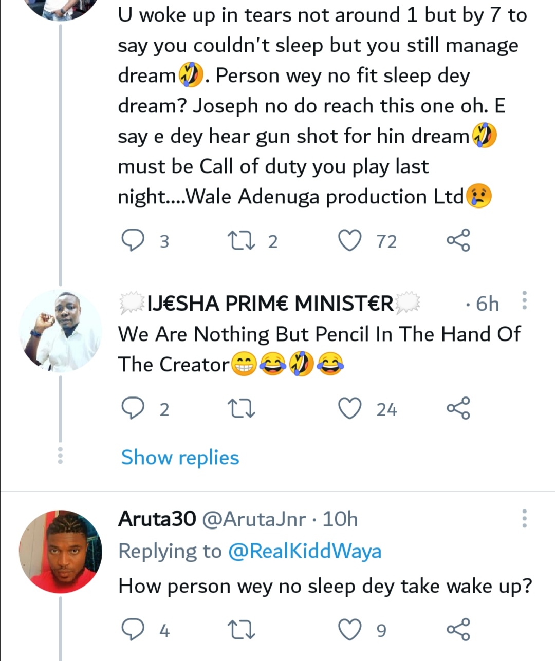 The lot who reacted to Kidd’s tweet seemed to doubt that he dreamt about what he shared and some even thought he was taking them for a ‘fool.’