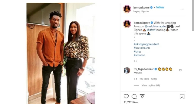 Reacting to Boma’s new deal, she took to the comment session and shared a clapping emoji with the caption, Moves.