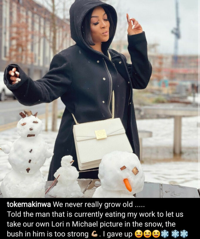 Toke Makinwa has pulled mixed comments on social media after she shared a photo of herself in the snow.