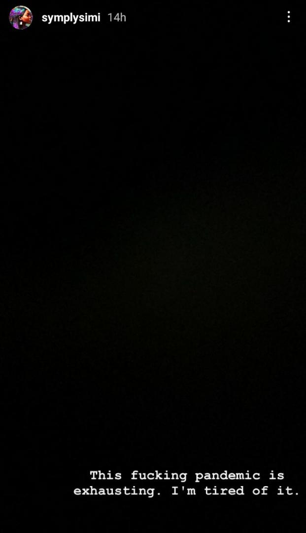 The Nigerian Singer, Simisola Kosoko, has expressed displeasure in the impact of Covid 19.