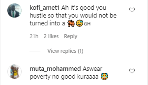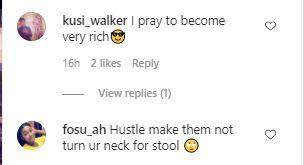 Reacting to the video, an Instagram user identified as @Fosu_ah wrote; “Hustle make them not turn ur neck for stool.”