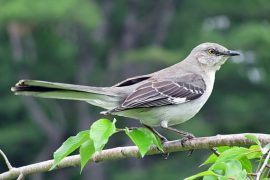 The only mockingbird commonly found in North America is the northern mockingbird (Mimus polyglottos). The Greek word polyglottos means ‘multiple languages’. Mockingbirds are known for singing late at night, even past midnight.