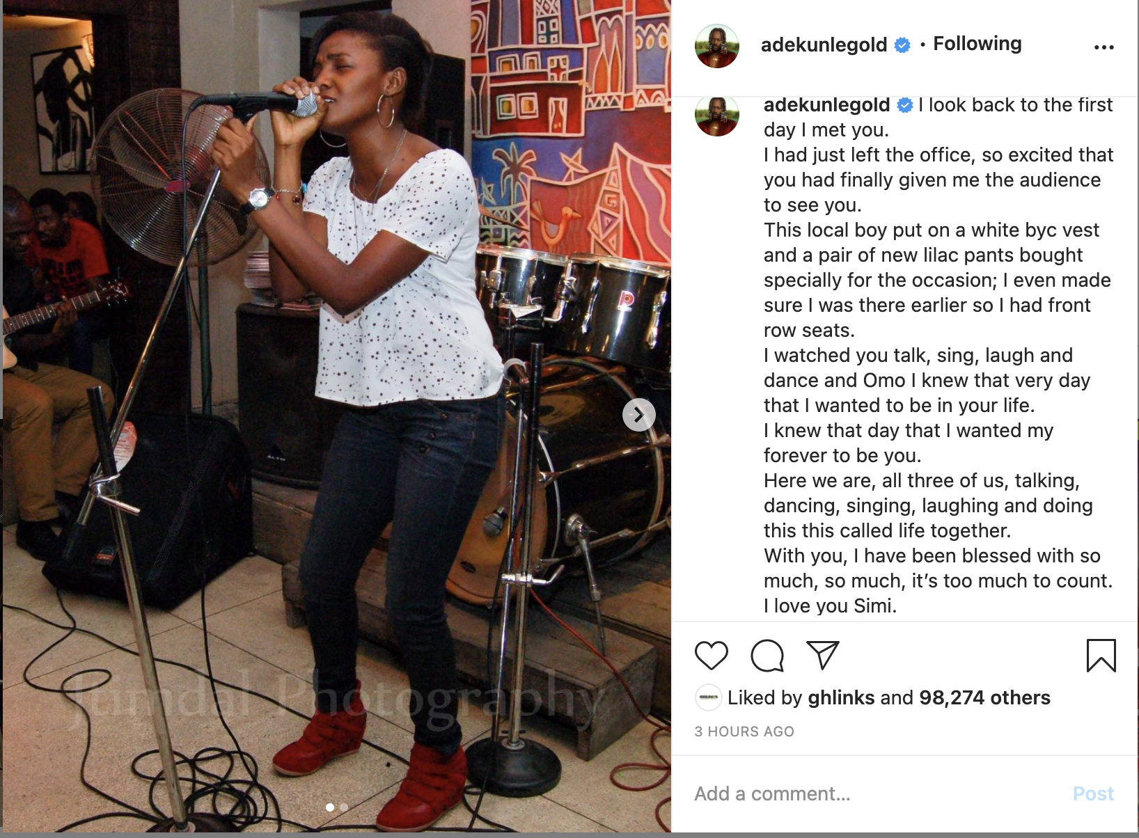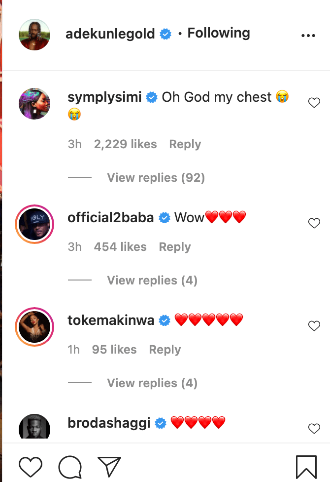 Nigerian celebrities including Toke Makinwa, 2baba, Simi, and others have reacted as Adekunle Gold’s took to social media and revealed how he met his wife Simi for the first time.