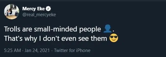 Mercy Eke, the former girlfriend of Ike Onyema has disclosed the reason why she fails to respond to social media trolls.