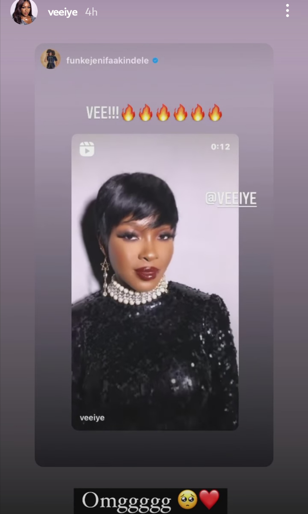 Funke seemed to have fallen in love with Vee’s look and reshared the video in her Instagram story.