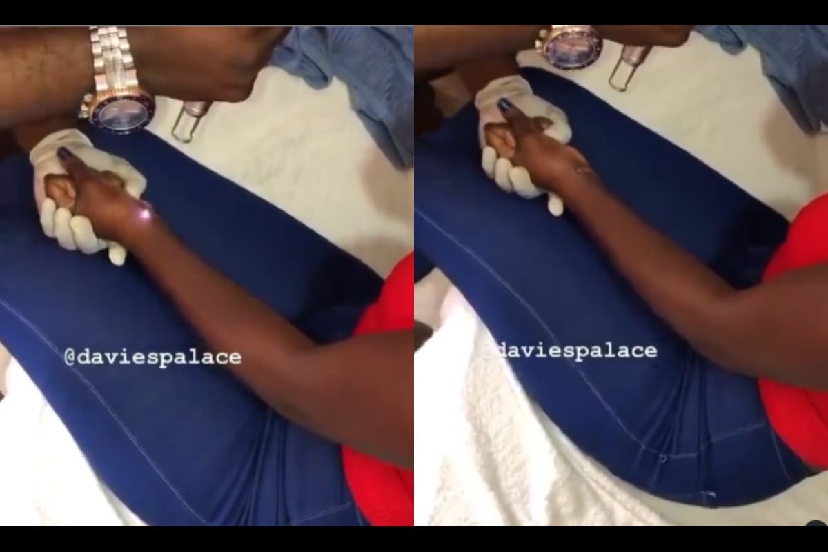 A video of a young Ghanaian lady while removing a tattoo of her boyfriend’s name on her hand has gone viral on the internet.